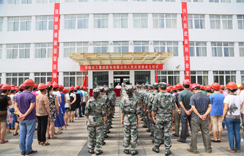 市委常委、人武部部長陳飛東同志為公司人民武裝部授旗