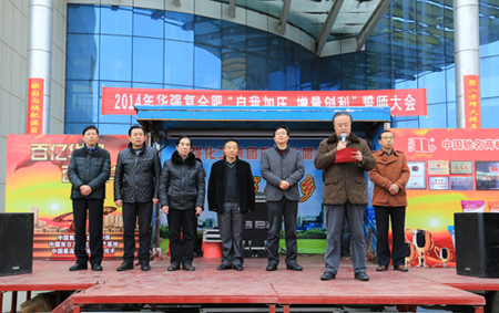 9點(diǎn)30分,集團(tuán)公司副總經(jīng)理、農(nóng)貿(mào)公司總經(jīng)理周棟梁發(fā)布出征令。在“忠誠(chéng)敬業(yè)、興我華強(qiáng)”的誓言聲中,在磅礴激昂、鏗鏘有力的催征戰(zhàn)鼓聲里,在振聾發(fā)聵、響徹天際的禮炮歡送下,80余名營(yíng)銷人員滿懷豪情,在公司各級(jí)領(lǐng)導(dǎo)的注目中,又奔赴全國(guó)各地,揭開了新的銷售篇章。