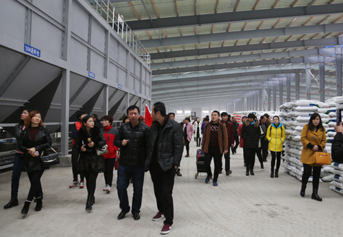經(jīng)綃商們到剛投產(chǎn)的硫基復(fù)合肥生產(chǎn)線參觀