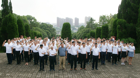 全體黨員佇立在襄西革命烈士紀念碑前,奏唱國歌。公司黨委書記、董事長萬建華同志和公司黨委委員、總經(jīng)理徐化林同志懷著無比崇敬的心情拾級而上,為革命烈士紀念碑敬獻花籃。在場的所有人員默哀吊唁,并集體肅立莊嚴宣誓,重溫入黨誓詞,大家面對鮮紅黨旗高舉右手,對黨許下莊嚴承諾。