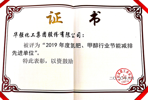 會(huì)上,華強(qiáng)化工集團(tuán)股份有限公司被授予中國(guó)“2019年度氮肥、甲醇行業(yè)節(jié)能減排先進(jìn)單位”稱號(hào),公司總經(jīng)理徐化林、環(huán)保部部長(zhǎng)夏雪峰分別榮獲“2019年度氮肥、甲醇行業(yè)節(jié)能減排先進(jìn)個(gè)人”榮譽(yù)稱號(hào),這是對(duì)公司一年來在綠色循環(huán)發(fā)展方面所取得成績(jī)的充分肯定。