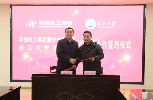 公司副董事長龐占嶺在簽約儀式上致辭。他說,華強(qiáng)化工集團(tuán)先后同華中農(nóng)業(yè)大學(xué)、南京農(nóng)業(yè)大學(xué)、華南農(nóng)業(yè)大學(xué)、湖北省農(nóng)科院等國內(nèi)四家知名院校合作,開發(fā)了功能肥、特色肥,提高了產(chǎn)品的科技含量和企業(yè)的核心競爭力。與此同時(shí),公司不斷完善“測、配、產(chǎn)、供、服”五維一體的新模式,在國內(nèi)逐步建立了超過3000塊科技試驗(yàn)田,涵蓋100多種作物,通過科技示范和農(nóng)化服務(wù),真正為終端客戶提供了精準(zhǔn)服務(wù)。我公司與長江大學(xué)農(nóng)學(xué)院開展產(chǎn)學(xué)研合作,不僅有利于我公司引進(jìn)更多的農(nóng)學(xué)專業(yè)人才,同時(shí)也為大學(xué)生提供了就業(yè)實(shí)習(xí)的平臺(tái),有利于提高大學(xué)生的社會(huì)實(shí)踐能力和學(xué)校的教育水平,必將實(shí)現(xiàn)“產(chǎn)教融合、資源互補(bǔ)、產(chǎn)學(xué)共羸”的目標(biāo)。