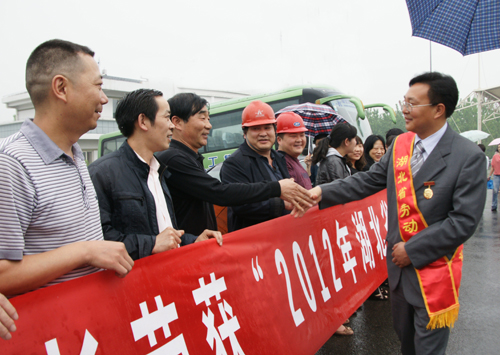 4月28日,公司董事長、總經(jīng)理余華強(qiáng)同志榮獲2012年湖北省勞動模范榮譽(yù)稱號,近200名干部員工冒雨到當(dāng)陽東高速路口迎接余董事長載譽(yù)歸來